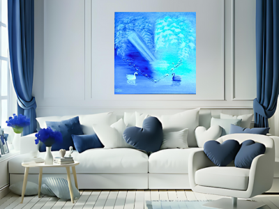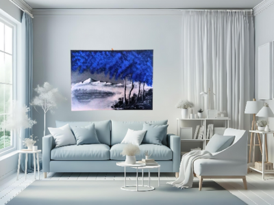 Na obraze se otevírá tichá modrá krajina, v níž měsíc svítí jako starodávná lucerna…